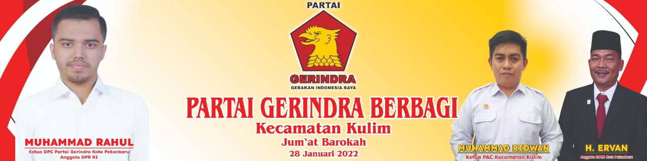 Jelang pelaksanaan pemilihan anggota legislatif tingkat kabupaten/kota awal tahun 2023 mendatang, partai gerakan Indonesia raya Gerindra pimpinan anak cabang kecamatan kulim kota Pekanbaru terus melakukan gerakan gerakan strategis guna mengumpulkan simpati dan perhatian dari masyarakat.