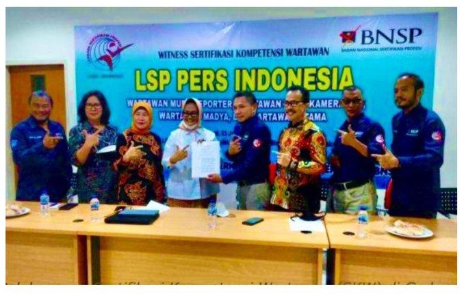 Sejarah baru, pertama kalinya, sertifikasi wartawan Indonesia resmi diakui BNSP itu terjadi saat pelaksanaan Sertifikasi Kompetensi Wartawan (SKW) oleh LSP Pers Indonesia, belum lama ini di Gedung Serbaguna LSP Pers, Komplek Ruko Ketapang Indah Jakarta serta disaksikan langsung oleh Tim Teknis BNSP.