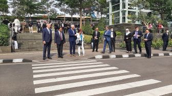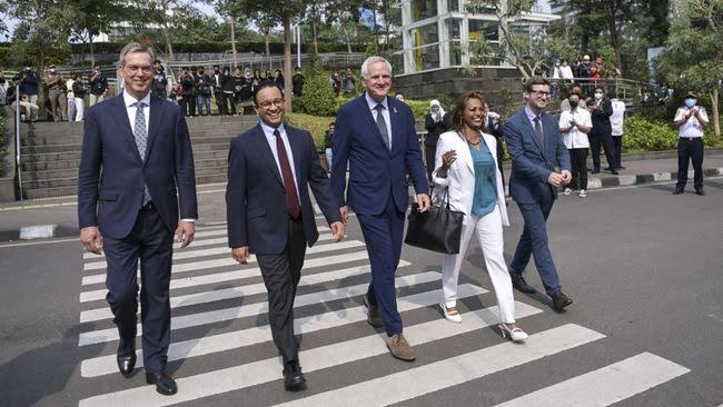 JAKARTA,Saturealita.com-Gubernur DKI Anies Baswedan mengajak Wakil Presiden Bank Investasi Eropa Kris Peeters dan rombongan catwalk di zebra cross Taman Dukuh Atas, Jakarta yang belakangan dikenal sebagai Citayam Fashion Week.