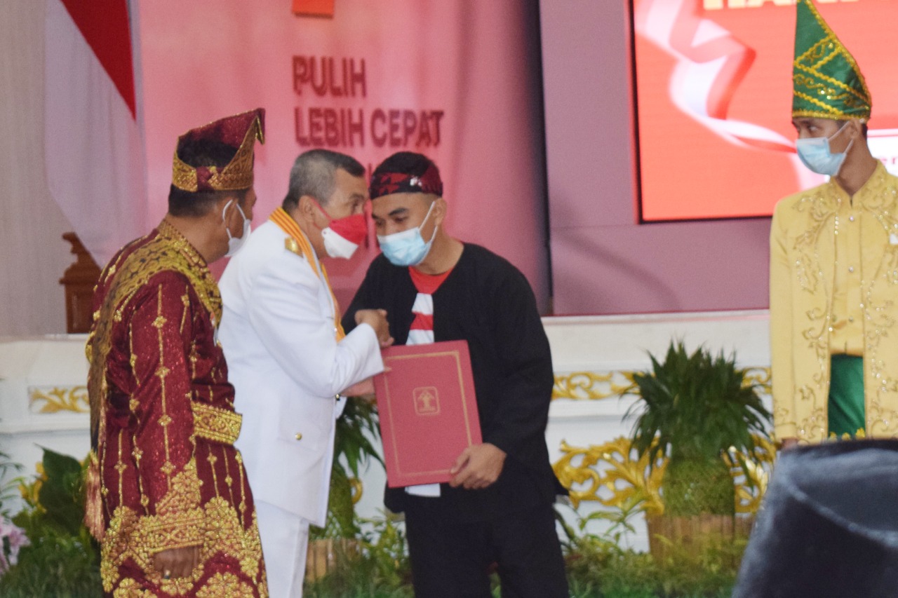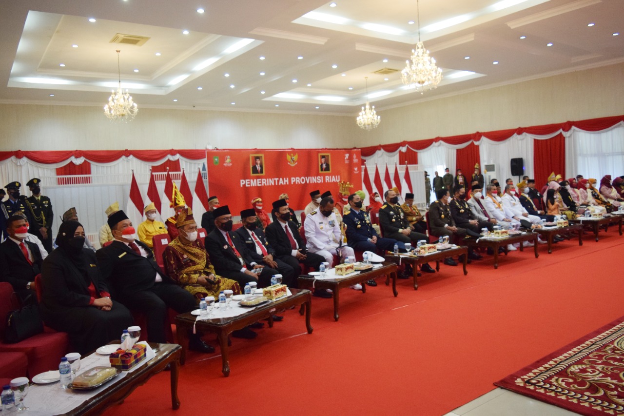 Penyerahan SK Remisi dilakukan langsung oleh Gubernur Provinsi Riau, Syamsuar kepada perwakilan WBP yang mendapatkan remisi HUT RI ke-77 yang disaksikan oleh Kepala Kanwil Kemenkumham Riau, Mhd. Jahari Sitepu serta unsur Forkopimda di Balai Serindit Komplek Kediaman Dinas Gubernur Riau (Gubri), Rabu (17/8/2022).
