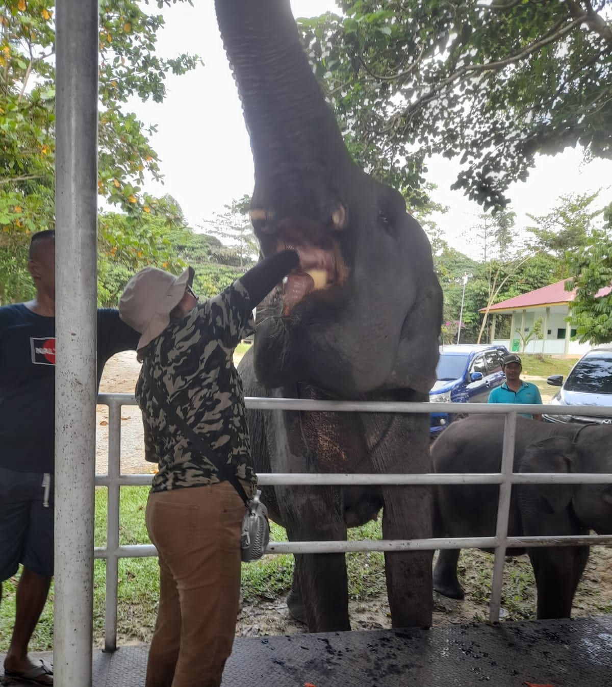 Selepas memandikan gajah dan berswafoto, rombongan mengajak pawang berserta gajah tersebut untuk menuju kesalah satu area balkon tempat dimana para instruktur dapat memberi makan gajah lebih dekat, pada saat itu tim panitia rombongan telah menyiapkan buah-buahan tidak kurang dari 200an KG berat nya yang terdiri dari buah-buahan campuran layak makan seperti semangka, jeruk, pepaya nenas, pir dan lain sebagainya.