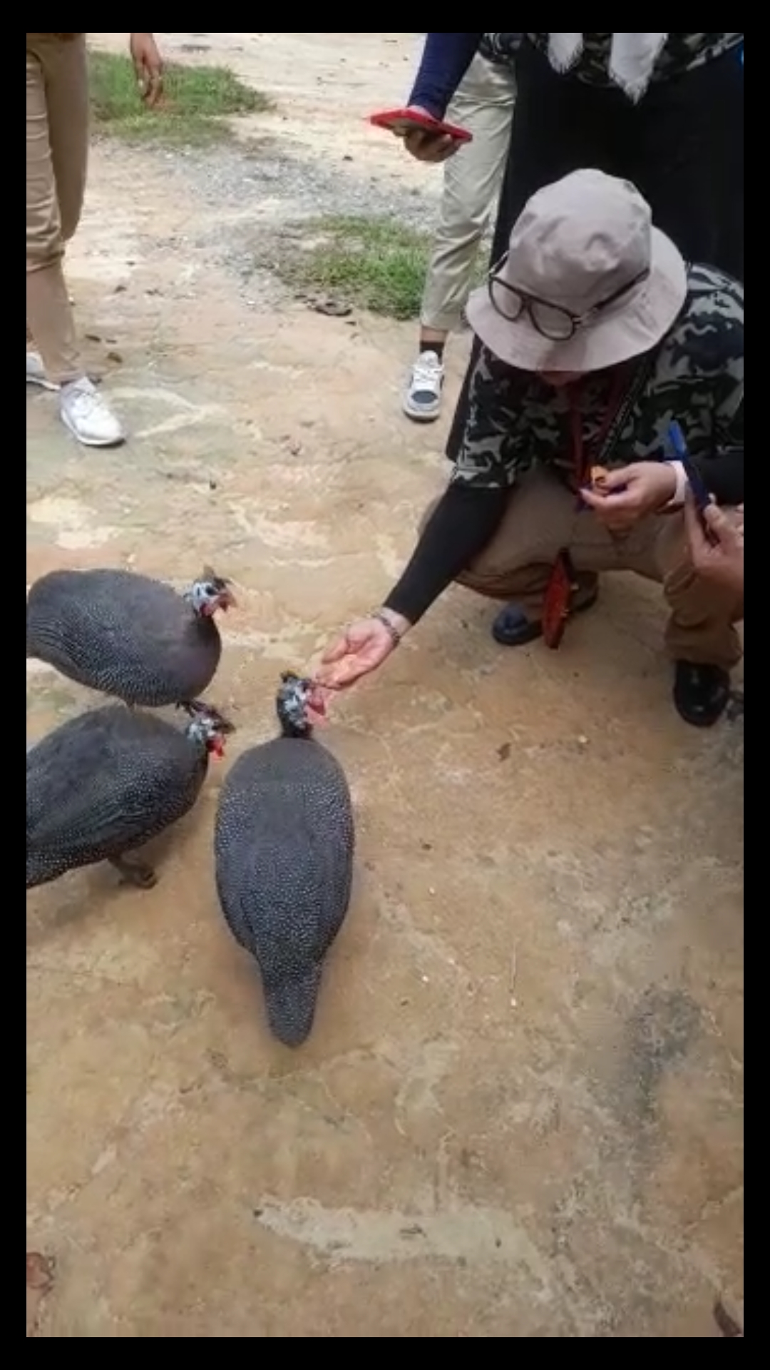 Berkisar 15 menit menuju area konservasi gajah akhirnya rombongan tiba di lokasi, sesampai nya dipintu gapura masuk lahan konservasi tampak rombongan langsung disambut 3 ekor gajah berukuran besar, setelah memarkirkan kendaraan saat itu rombongan tiba-tiba didatangi 3 ekor satwa cantik yakni ayam kalkun hias yang mengisyaratkan agar pengunjung memberi mereka makan.