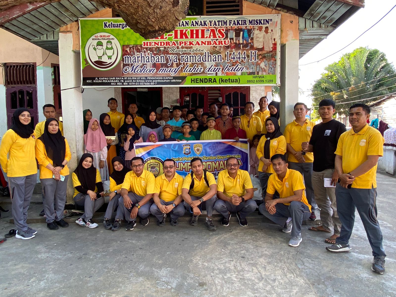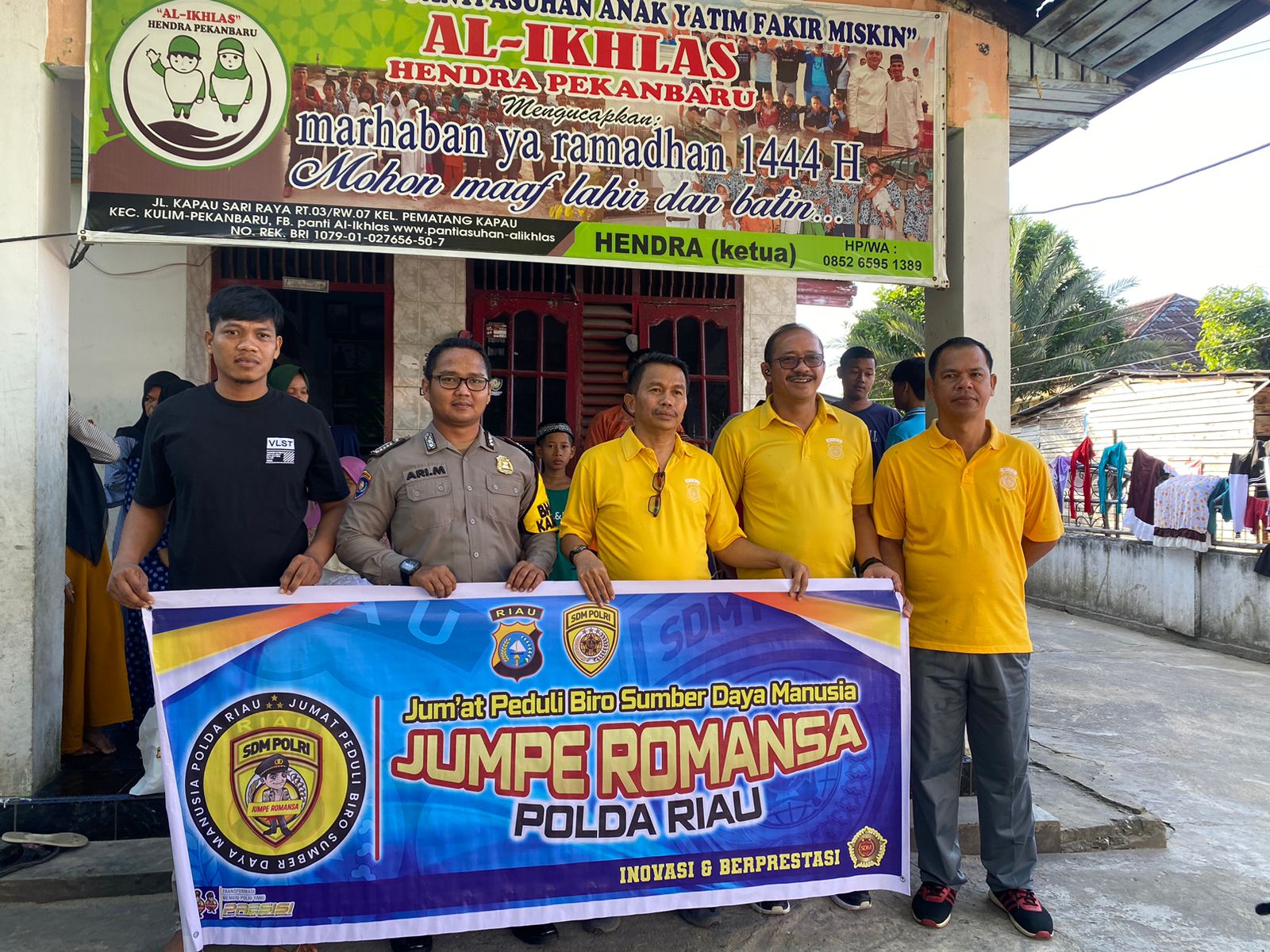 Giat bakti sosial JUMPE ROMANSA tim Biro SDM Polda Riau menyambangi Panti Asuhan Al-Ikhlas Jalan Kapau Sari Ujung RT 003/RW 007, Pematang Kapau Kecamatan Tenayan Raya Kota Pekanbaru, Jumat (16/06/2023).
