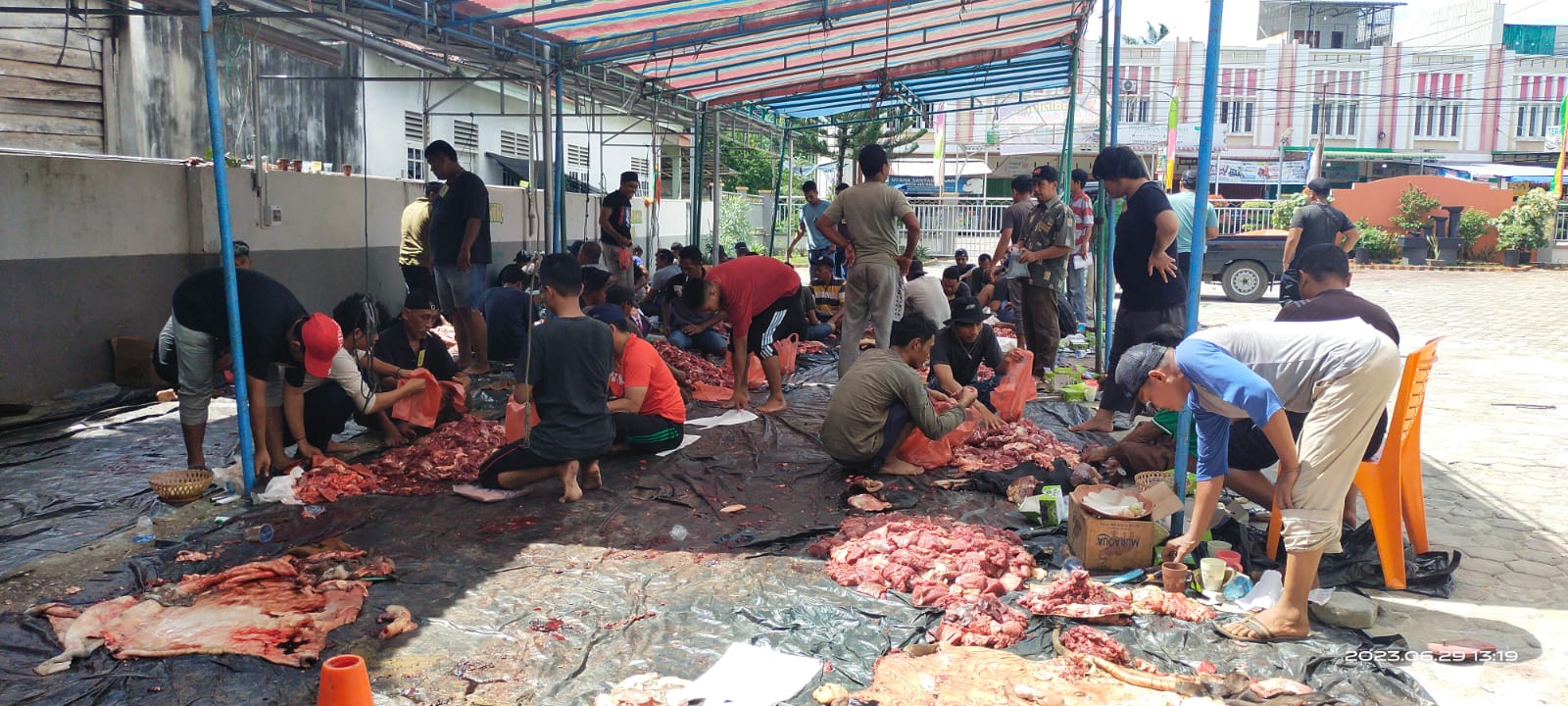 Demikian dikatakan Ketua Panitia Qurban Masjid Al-Muttaqin Sersan Mayor Rizali didampingi sekretaris dan bendahara, Kamis siang, (29/6/023) dilokasi pemotongan.