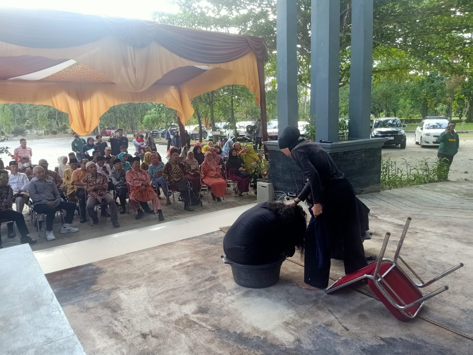 Pertunjukan teater mini itu menjadi tradisi baru di UNRI yang ditandai menyambut guru besar baru di FISIP, Prof. Ali Yusri yakni guru besar Ilmu Pemerintahan.