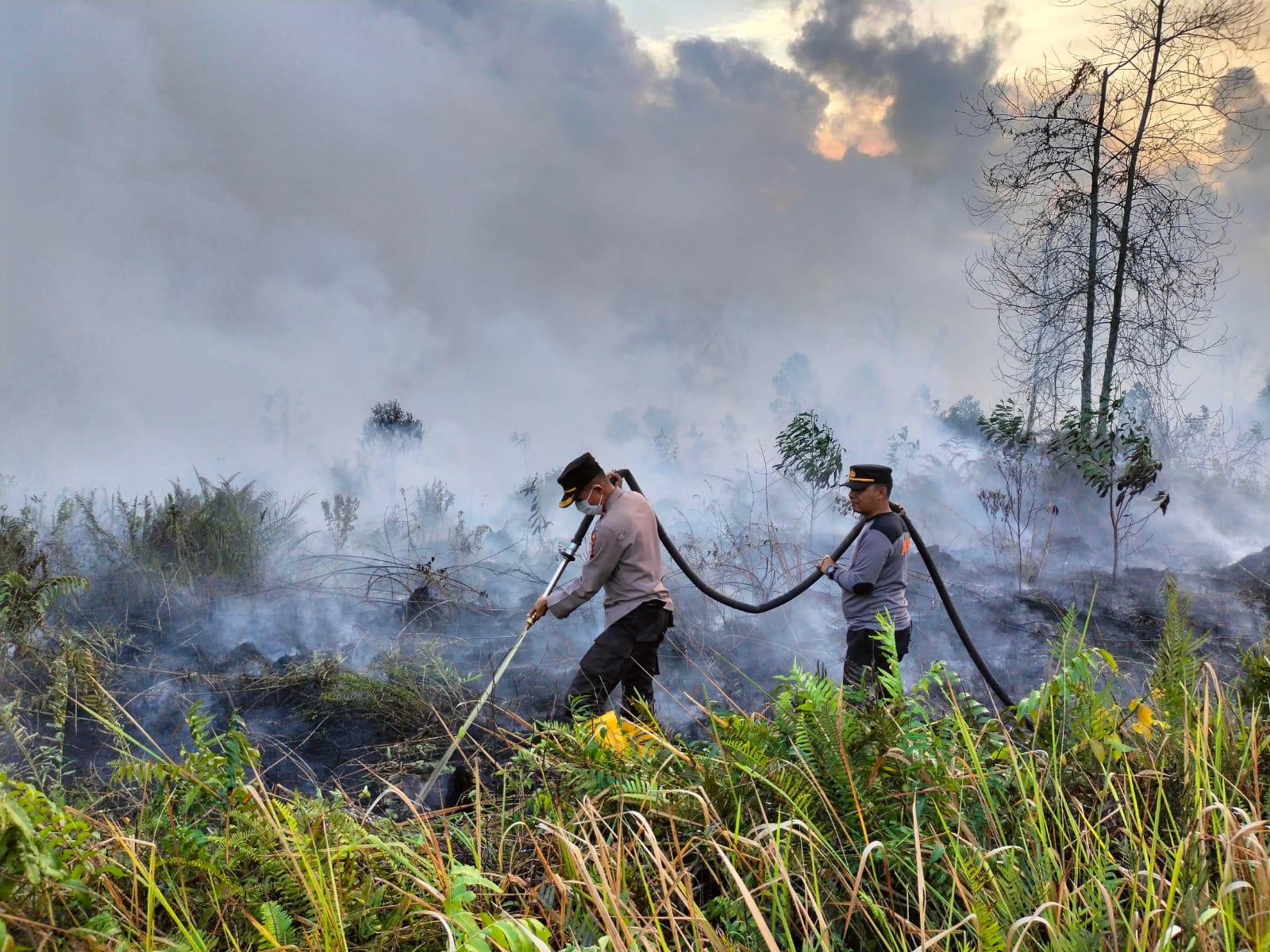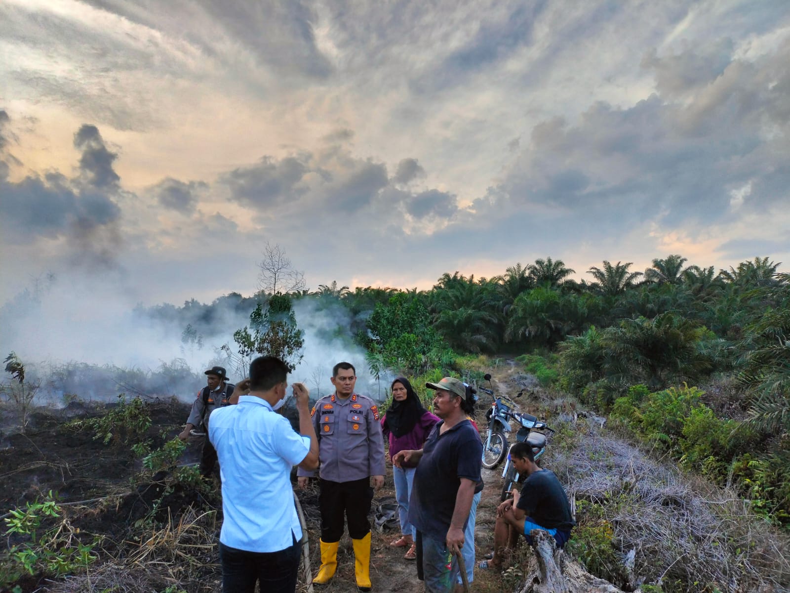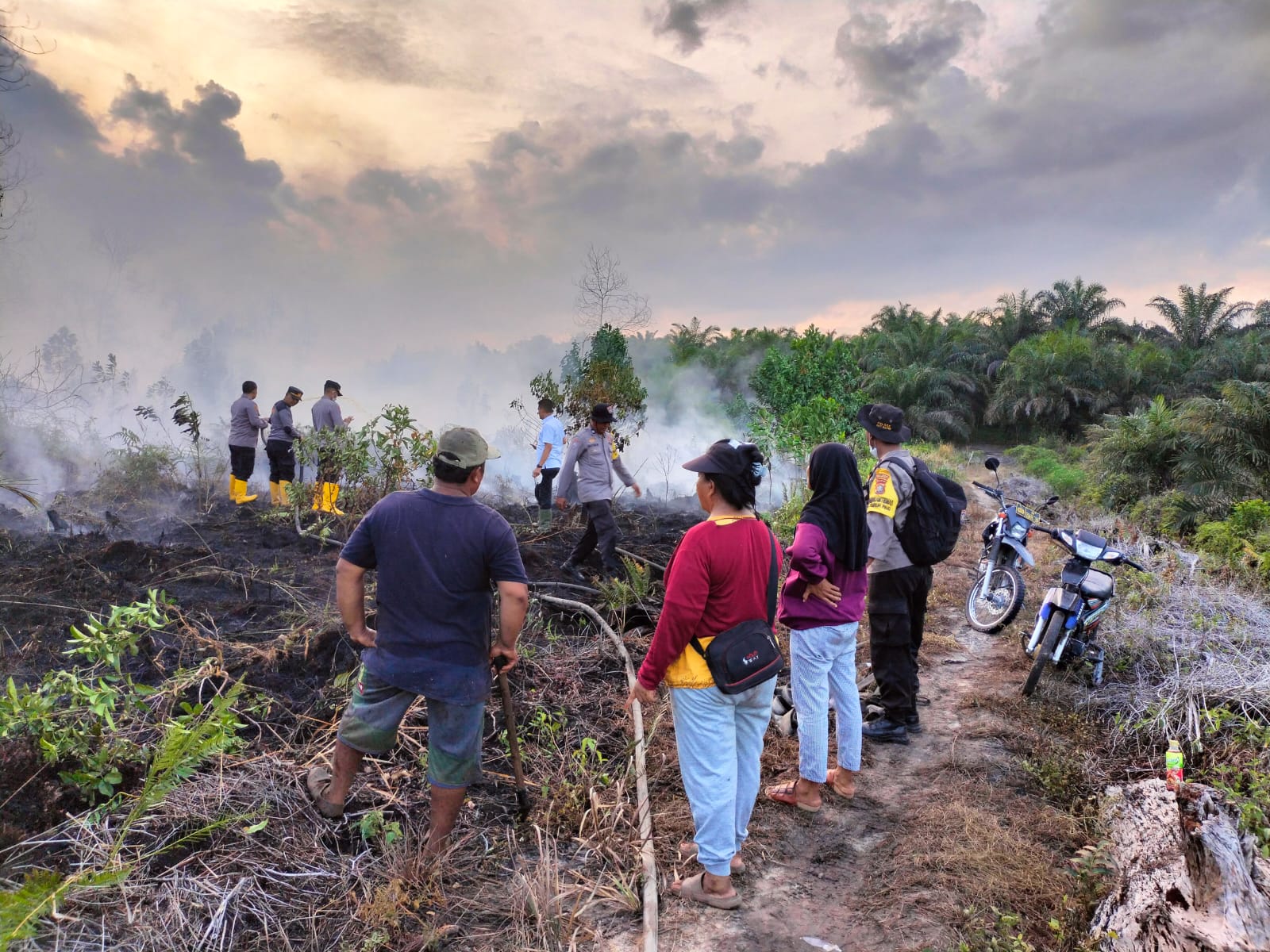 Kondisi jalan yang sulit ditempuh tidak menjadikan ini suatu halangan untuk Kapolres Dumai bersama anggotanya untuk memadamkan api. Setibanya di lokasi Kapolres Dumai langsung melakukan pemadaman dilahan gambut tersebut menggunakan alat yang telah disediakan.