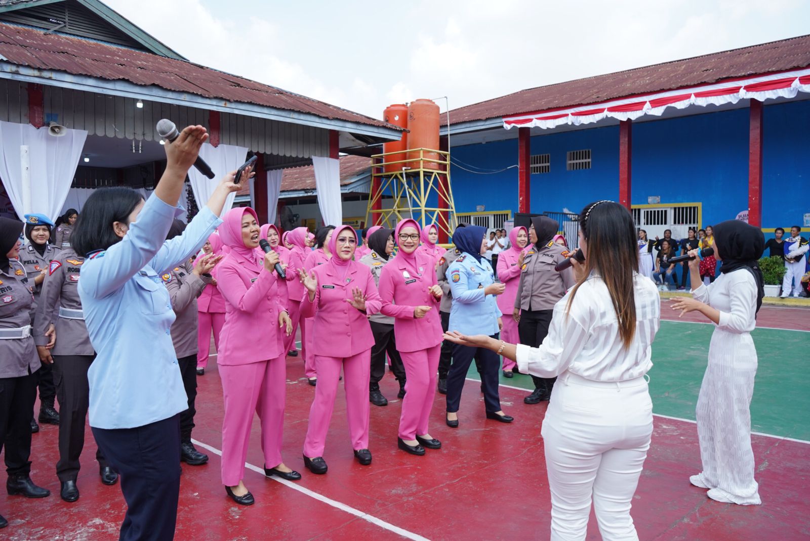 PEKANBARU,Saturealita.com-Dalam rangka Hari Kesatuan Gerak Bhayangkari ke-71 dan HUT Polwan ke-75, Ketua Bhayangkari Polda Riau, Ny M. Nindya Iqbal sambangi Lapas Perempuan Kelas II A Pekanbaru.