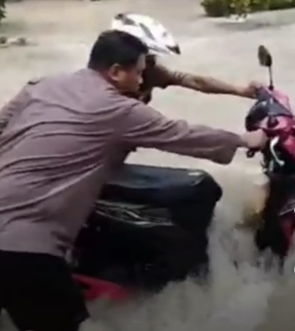 Terlihat dari pantau dilapangan, Kapolsek Tenayan Raya Polresta Pekanbaru, Kompol Ryan Fajri bersama personilnya baik Bhabinkamtibmas, Lantas dan lainnya turun langsung monitor stuasi dan kondisi, bahkan memberikan pertolongan kepada warga yang magok kendaraannya untuk didorong kepinggir.
