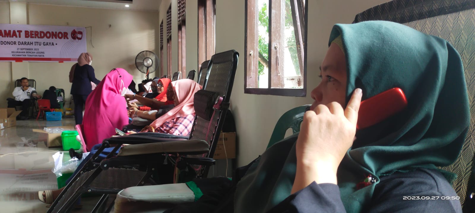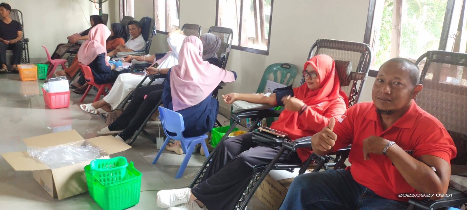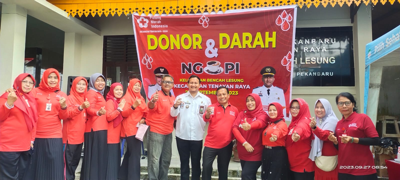 “Atas perintah dan izin Camat Tenayan Raya Abdul Barri Sip, pelaksanaan dilakukan depan kantor Lurah Bencah Lesung dan pengambilan darah mengunakan ruang aula pertemuan,” ucapnya.