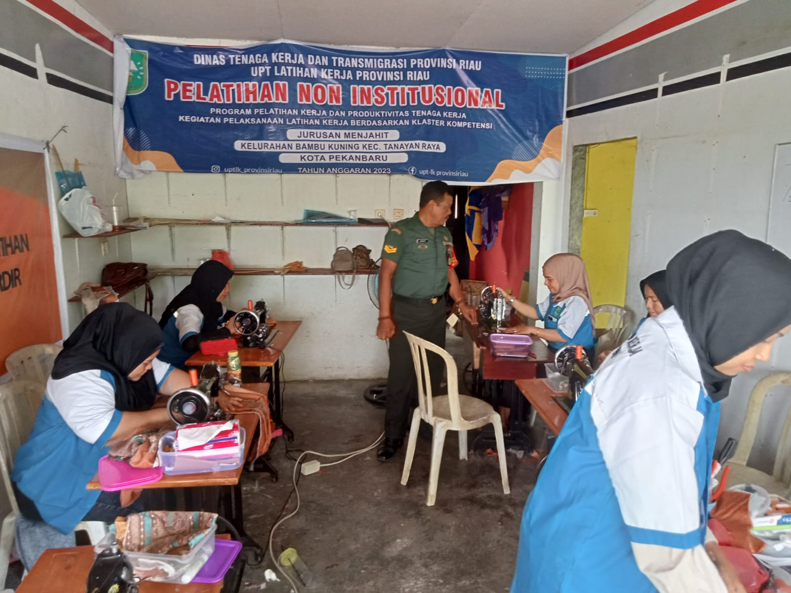 Sementara itu, kegiatan pelaksanaan latihan kerja berdasarkan klaster kompetensi jurusan menjahit dari Dinas Tenaga kerja Transmigrasi provinsi Riau bertempat Jalan Jawa RT 01 RW 01 Kelurahan Sialang Sakti kecamatan Tenayan Raya Pekanbaru.