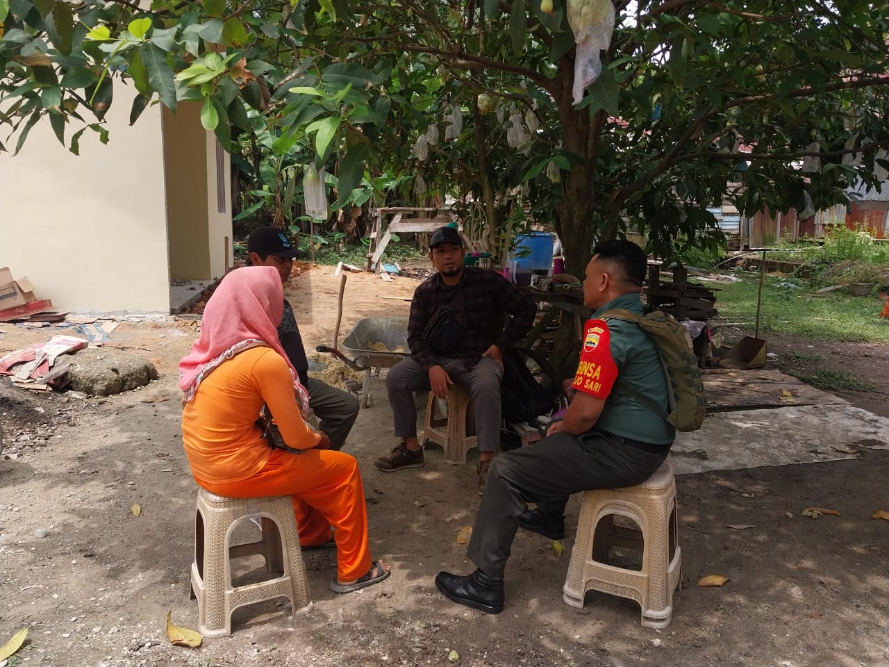 Kegiatan Komsos Babinsa bersama Ketua LPM Rejosari Kusmaryanto dan Agustina penerima rumah layak huni di RT 05 RW 14 Jalan Bata, Kelurahan Rejosari Kecamatan Tenayan Raya Pekanbaru