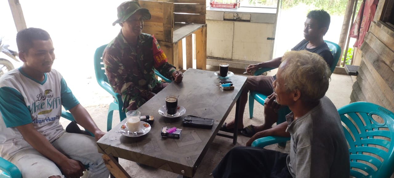 PEKANBARU (Saturealita.com)-Giat Komunitas sosial (komsos) Sertu Ucok Parluhutan Babinsa Koramil 04/Limapuluh Kodim 0301/Pekanbaru, membahas terkait ajakan kepada pemuda dan warga untuk lebih aktif melaksanakan pengetantan keaamanan lingkungan dengan cara mengaktifkan kembali Sistim Keamanan lingkungan (Siskamling)Jalan Harapan Jaya RT.05/RW.05 Kelurahan Bencah Lesung Kecamatn Tenayan Raya Pekanbaru.
