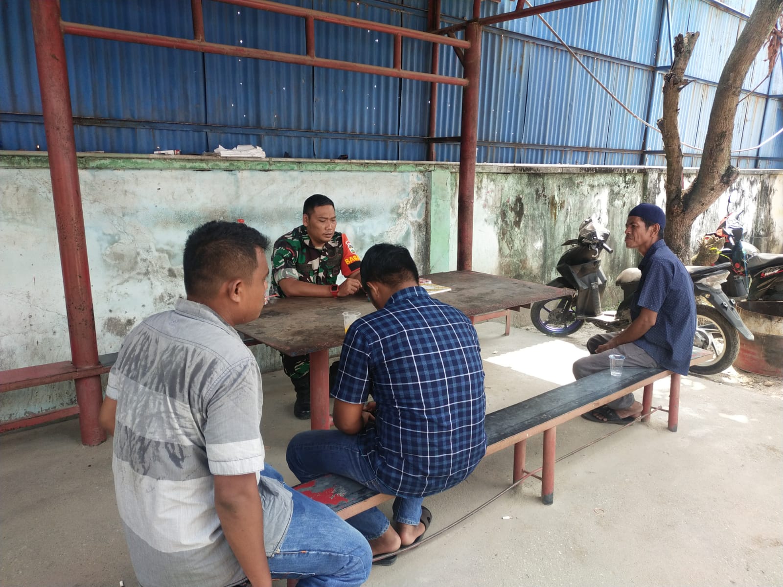 Babinsa Koramil 04/Limapuh Kodim 0301/Pekanbaru kelurahan pesisir, Sertu Harianto melaksanakan kegiatan Komunikasi sosial (Komsos) bersama Ketua RW 04 beserta tiga orang masyarakat.