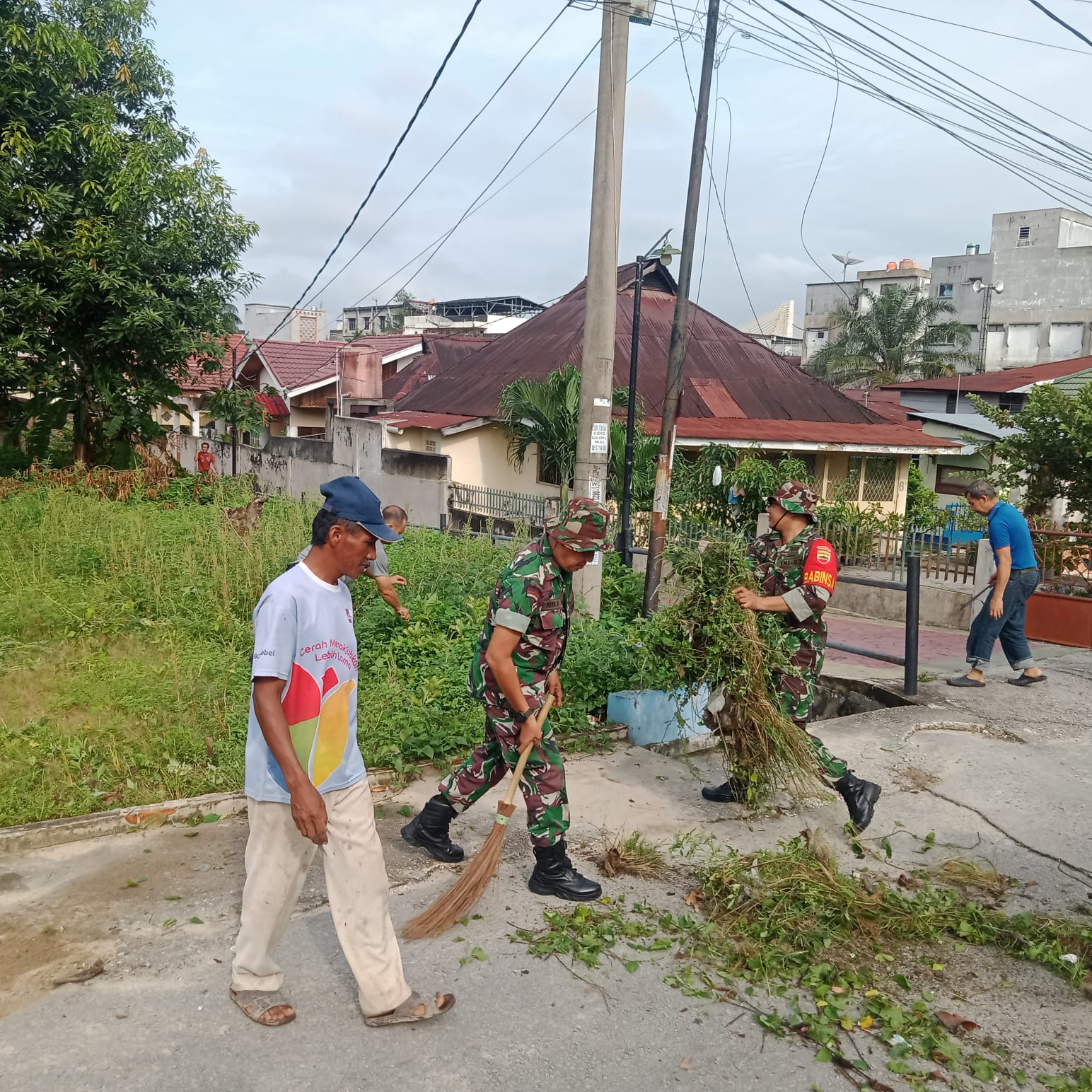 PEKANBARU (Saturealita.com)-Dalam rangka mewujudkan lingkungan bersih dan kepedulian terhadap kesehatan, Babinsa Koramil 04/Limapuluh Kodim 0301/ Pekanbaru, Serda Suparyono bergotong royong (goro) bersama warga RW 03 membersihkandisekitar Jalan Rokan Kelurahan Tanjung Rhu Kecamatan Limapuluh Kota Pekanbaru, Senin (13/11/2023) sekitar Pukul 08.00.WIB.