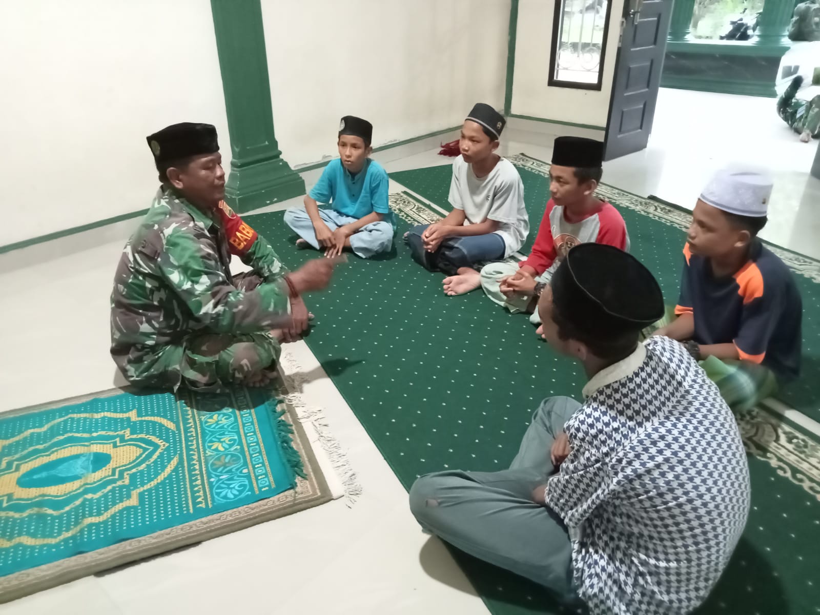 PEKANBARU (Saturealita.com)-Kegiatan Komunikasi sosial (Komsos) Babinsa Sialang Sakti, Koramil 04/Limapuluh Kodim 0301/Pekanbaru, Sertu Karjo bertempat Pondok Pesantren Al-Hisa Hangtuah