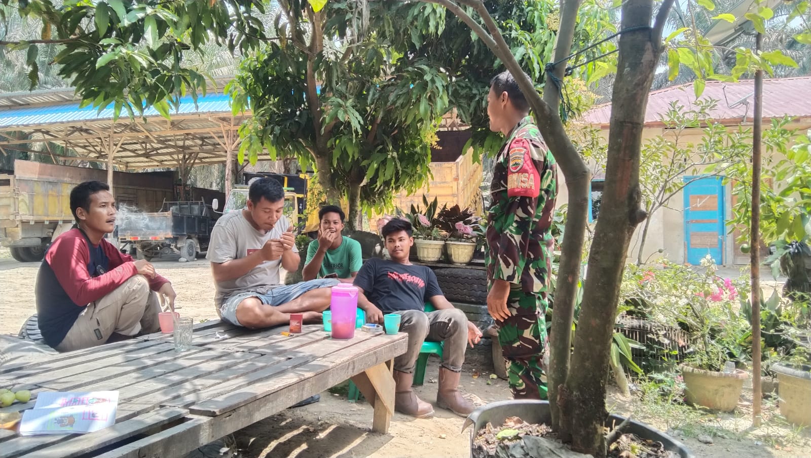 Babinsa Koramil 04/Limapuluh, Serda Ponco Saputro saat melaksanakan kegiatan Komunikasi sosial (Komsos) bersama warga dan pemuda masyarakat Kelurahan Tangkerang Timur Kecamatan Tenayan Raya Kota Pekanbaru.