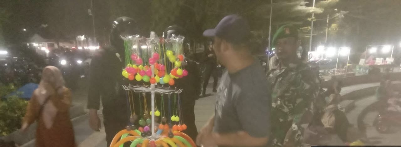 Penguatan ini, Babinsa Bencah Lesung Koramil 04/Limapuluh Kodim 0301/Pekanbaru, Sertu Ucok Parluhutan bersama dengan satu regu Pasukan elit Polri, Bregadil Mobil (Brimob) dalam patroli Keamanan dan Ketertiban Masyarakat (Kamtibmas) tempat Keramaian Kota Pekanbaru.