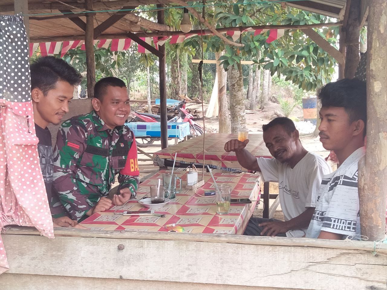 PEKANBARU (Saturealita.com)-Babinsa Tuah Negeri Koramil 04/Limapulu Kodim 0301/Pekanbaru, Pratu Dio Goes F Nainggolan mengajak Ketua Pemuda dan masyarakat dalam menjaga stuasi keamanan.