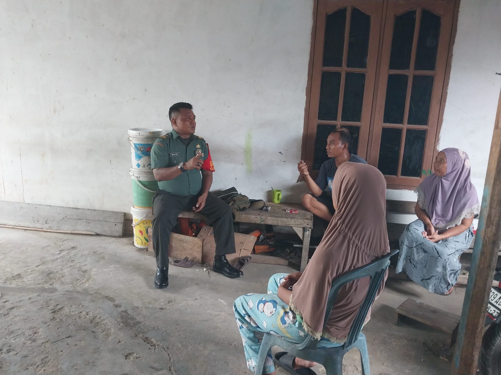 Babinsa Koramil 04/Limapuluh Kodim 0301/Pekanbaru, Peltu Masturo dalam menjalin keakraban dan melaksanakan Komsos dengan tokoh pemuda dan pemudi bertempat, Jalan Segar Gang Baiturahman Kelurahan Rejosari Kecamatan Tenayan Raya Pekanbaru, Selasa (21/11/2023) siang.