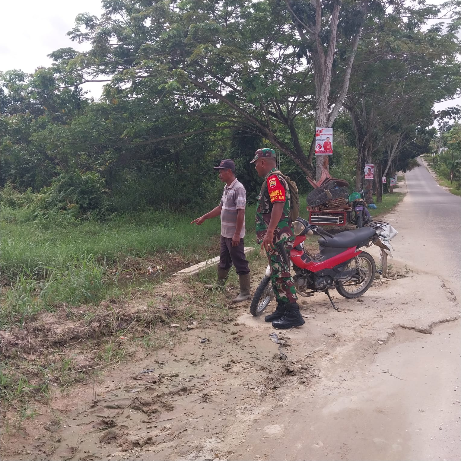 PEKANBARU (Saturealita.com)-Babinsa Koramil 04 Limapuluh Kodim 0301 Pekanbaru, Peltu Masturo melaksanakan kegiatan Komunikasi Sosial (Komsos) bersama Ketua RT 04 RW 02 dalam rangka rencana gotong royong pembersihan lingkungan dan saluran pembuangan limbah rumah tangga atau parit di sepanjang gang Kuantan RT 02 dan RT 04 Kelurahan Rejosari Kecamatan Tenayan Raya Pekanbaru, Sabtu (9/12/2023).
