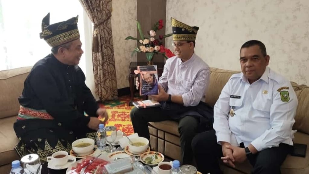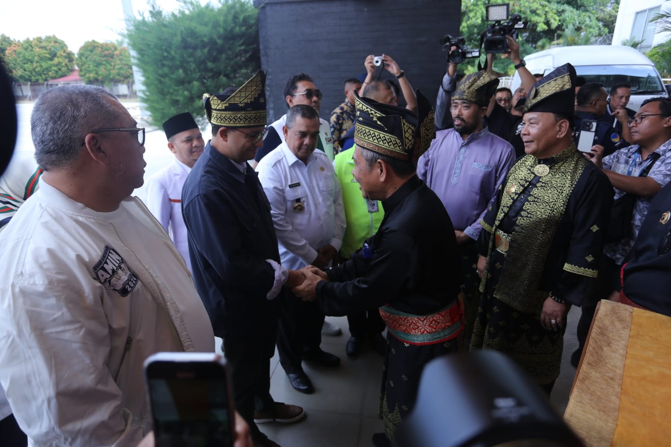 Dalam pantauan terlihat kedatangan capres yang diusung Partai Nasdem, Partai Keadilan Sejahtera (PKS), dan Partai Kebangkitan Bangsa (PKB) itu, juga disambut langsung Gubernur Riau, Brigjen TNI (Purn) Edy Nasution