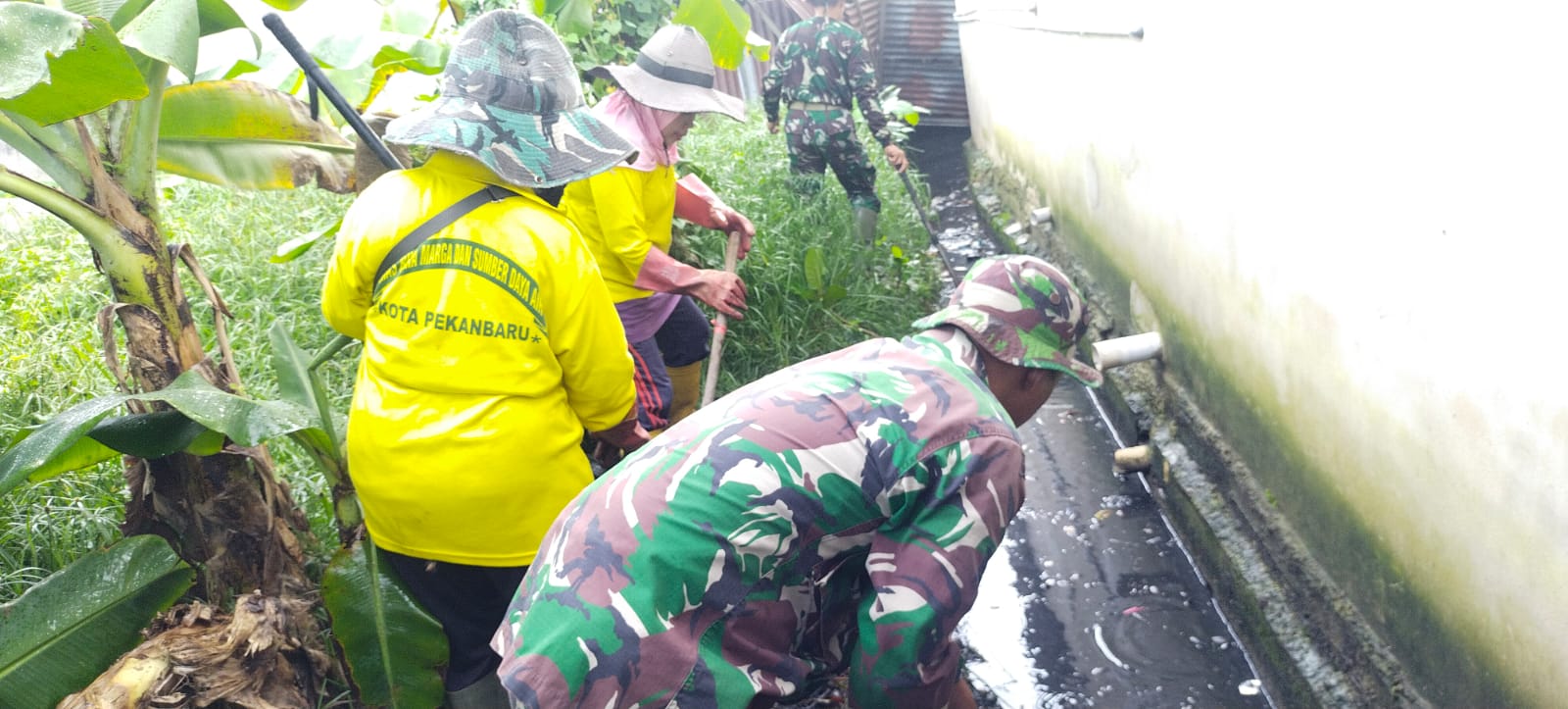 PEKANBARU (Saturealita.com)-Pada hari Sabtu 16 Desember 2023 Pukul 08.30 Wib Babinsa kelurahan Bencah Lesung Sertu Ucok Parluhutan Koramil 04/Lph Kodim 0301/Pbr melaksanakan kegiatan Gotong Royongan di Jalan Indrapuri ujung RT.01,02,03 RW.05 Kelurahan Bencah Lesung Kecamatan tenayan Raya Pekanbaru