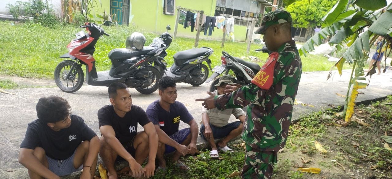 PEKANBARU (Saturealita.com)-Babinsa Kelurahan Bencah Lesung Sertu Ucok Parluhutan Koramil 04 Limapuluh Kodim 0301 Pekanbaru,, melaksanakan kegiatan Komunikasi sosial ( Komsos ) sekaligus, memberikan wawasan kebangsaan kepada Pemuda bertempat Jalan Harapan jaya RT 03 RW 05 kelurahan Bencah Lesung Kecamatan Tenayan Raya kota Pekanbaru, Selasa (19/12/2023).