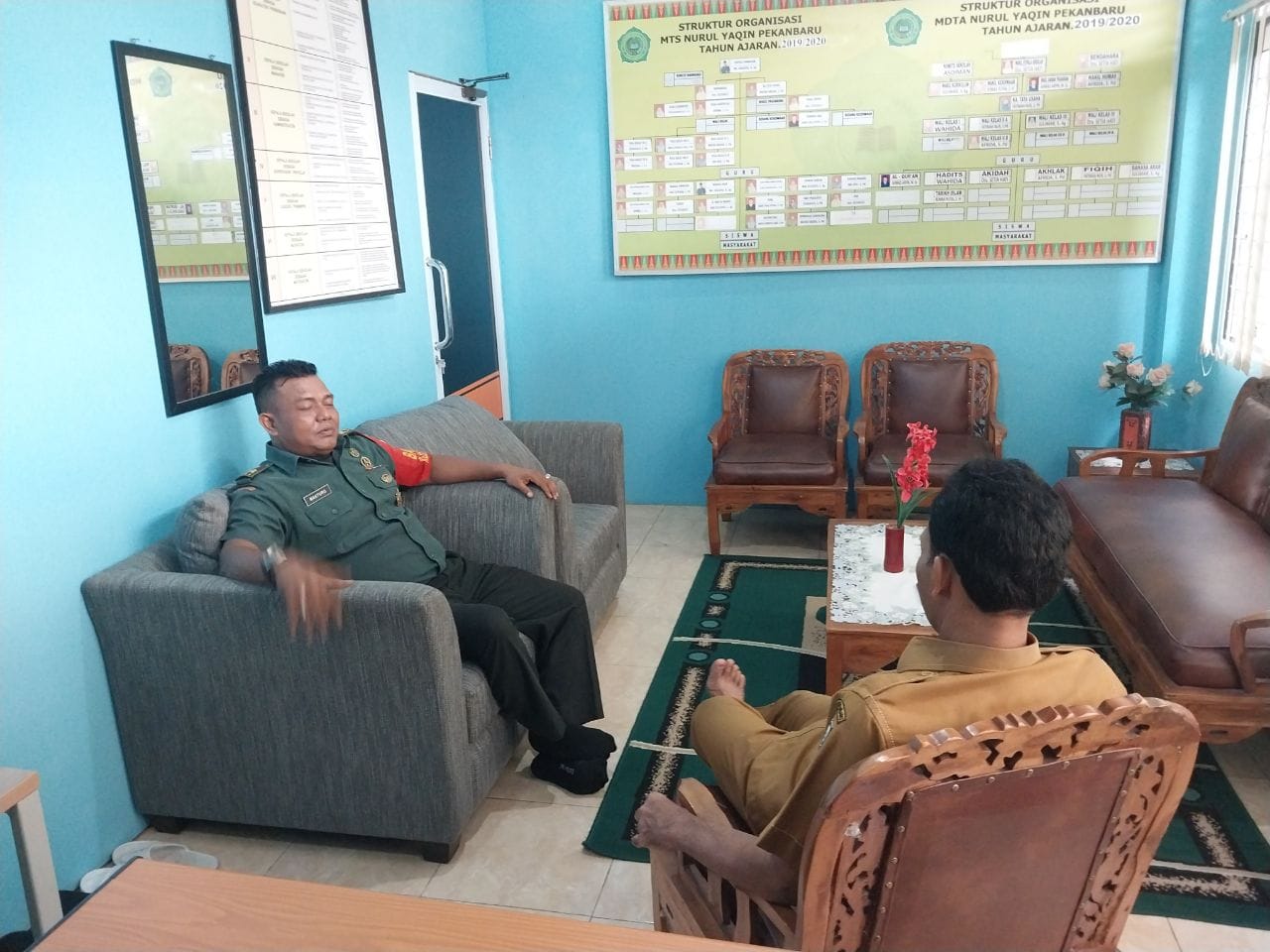 PEKANBARU (Saturealita.com)-Babinsa Koramil 04 Limapuluh Kodim 0301, Peltu Masturo melaksanakan kegiatan Komunikasi sosial (Komsos ) bersama DR. Zulkapli M.Ag (Kepsek MTS Nurul Yaqin) bertempat di MTS Nurul Yaqin Kelurahan Rejosari RT 01 RW 02 Jalan Hangtuah Kecamatan Tenayan Raya Kota Pekanbaru, Rabu (20/12/2023).
