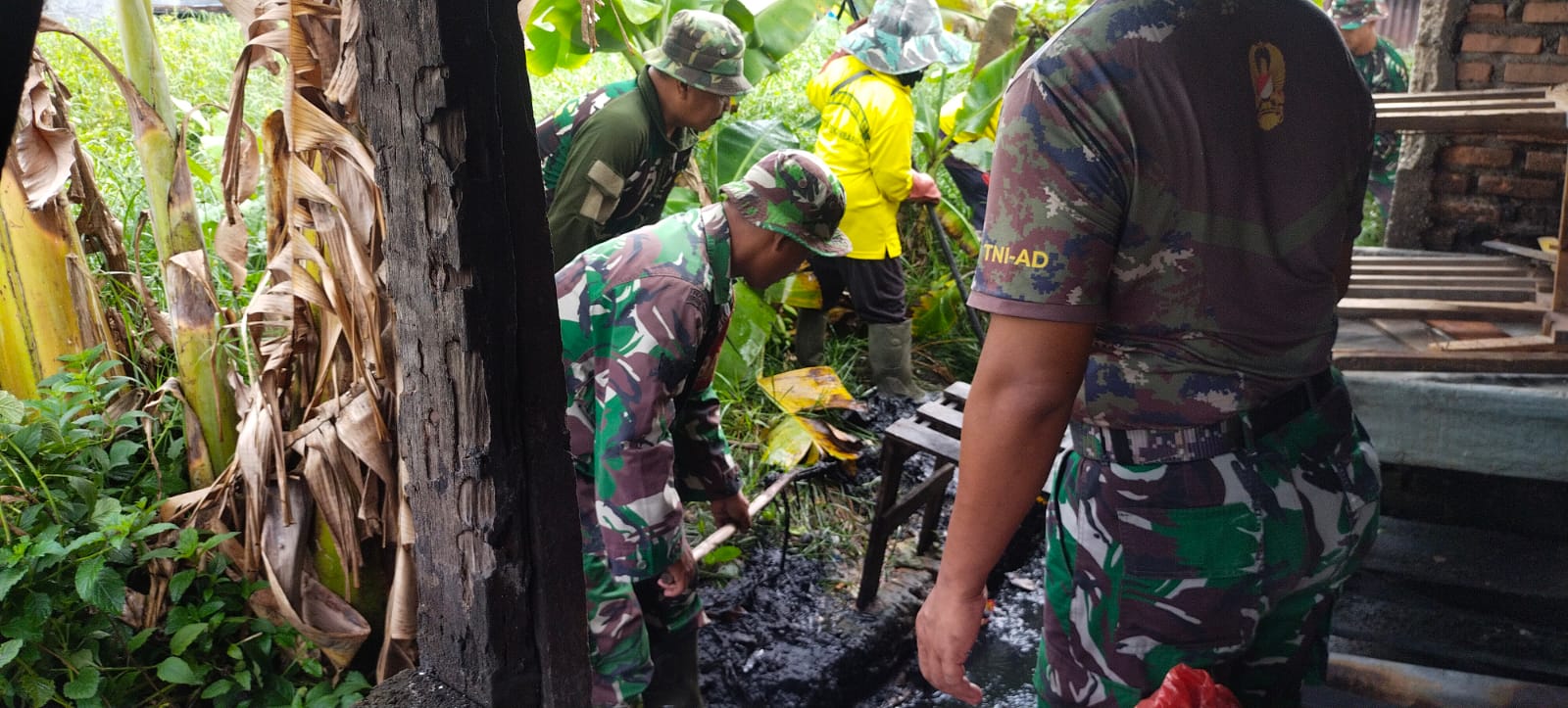 Babinsa Bencah Lesung dalam kegiatan gotong royong menyampaikan kepada Ketua RW 07, Basri agar bahu membahu dalam gotong royong membantu mengawasi kondisi lingkungan dalam menghadapi permasalahan yang terjadi di wilayah terutama banjir .