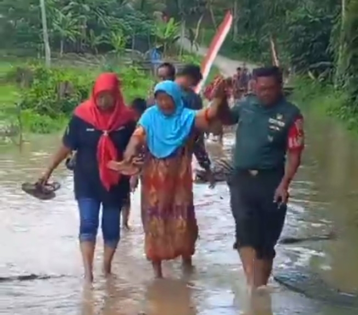 PEKANBARU (Saturealita.com) -Babinsa Koramil 04 Limapuluh Kodim 0301 Pekanbaru, Sertu Karjo melaksanakan kegiatan monitor perkembangan banjir dan membantu warga yang melintas di jalan Sumatra ujung RT 04 RW 12 Kelurahan Sialang Sakti Kecamatan Tenayan Raya Kota Pekanbaru, Sabtu (23/12/2023).