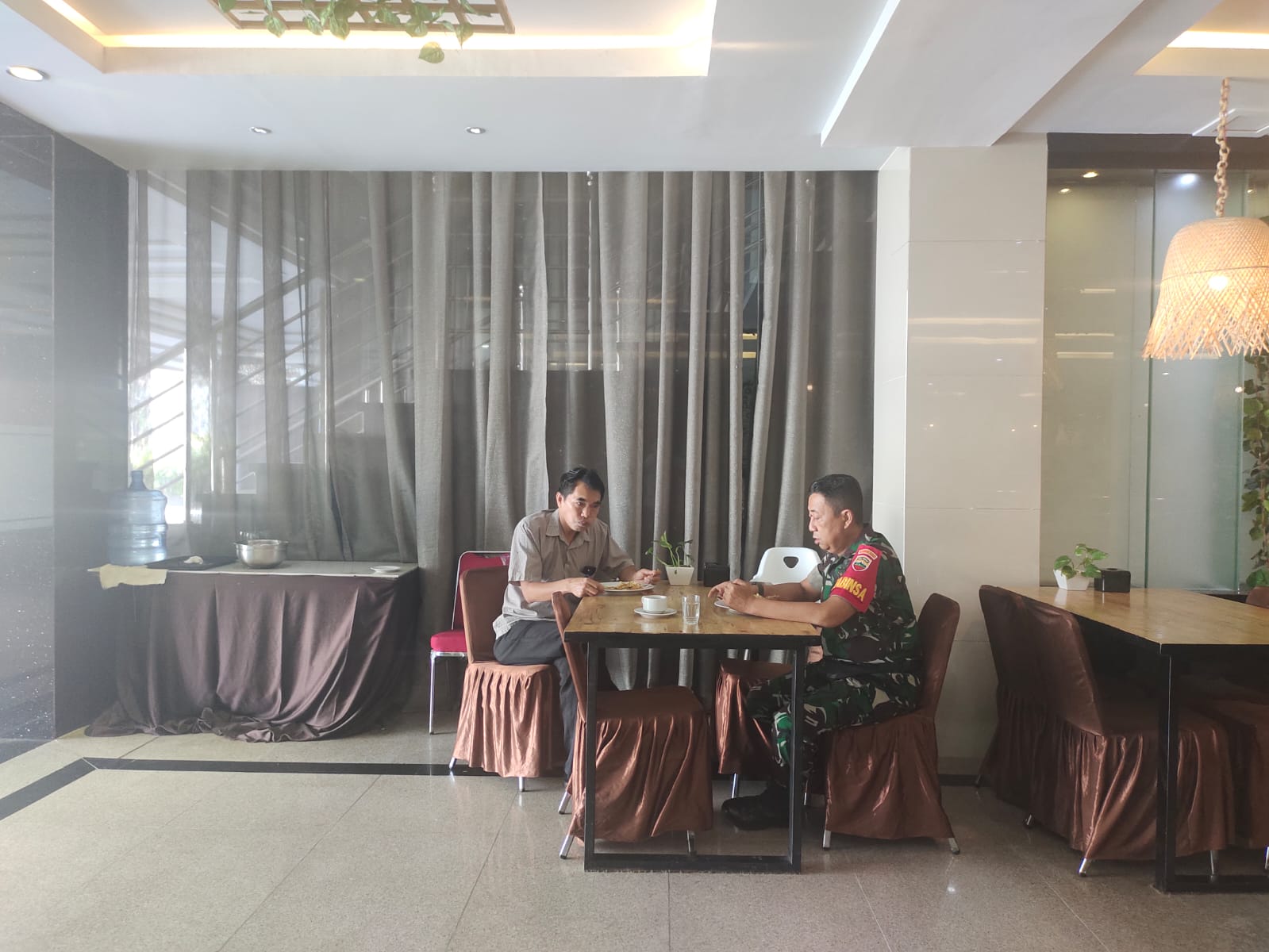 Babinsa koramil 04 Limapuluh Kodim 0301 Pekanbaru, Serma (K) Elisa Norma dan Sertu Budi Setiawan giat Komunikasi sosial (Komsos) terkait keamanan hotel Egenering Hawai Pekanbaru.