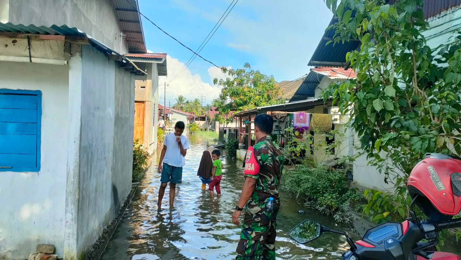 PEKANBARU (Saturealita.com)-Babinsa Koramil 04 Limapuluh Kodim 0301 Pekanbaru, Sertu M.Isak melaksanakan monitoring perkembangan dampak bencana banjir akibat intensitas curah hujan lebat dan luapan sungai SAIL bertempat Jalan Araffa dan Jalan AMD Kelurahan Tanjung Rhu Kecamatan Limapuluh Kota Pekanbaru, Rabu (3/01/2024).