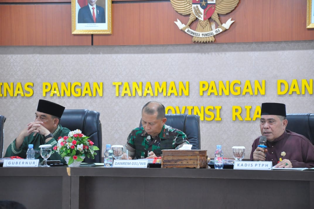 PEKANBARU (Saturealita.com)-Rapat koordinasi (Rakor) tindak lanjut kerjasama antara Pemerintah Provinsi Riau dan Korem 031/Wira Bima untuk meningkatkan gerakan penyediaan pangan digelar.
