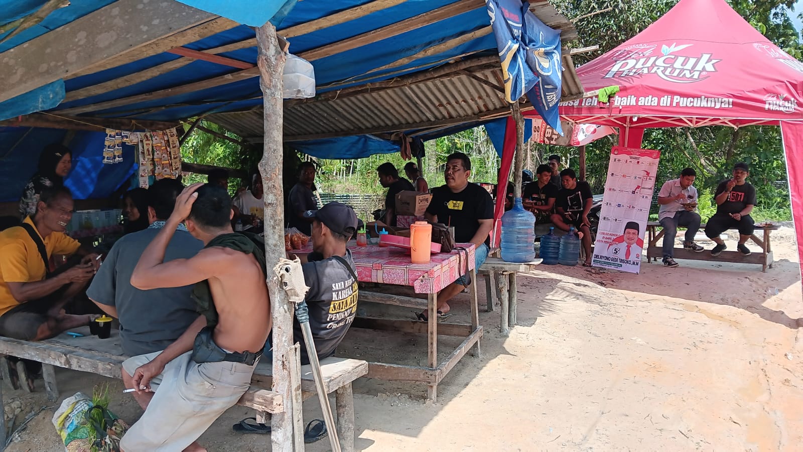 PEKANBARU (Saturealita.com)-Sosok Tokoh Masyarakat Tenayan Raya bernama lengkap Drs. Riyono Gede Trisongko MM, ajak makan siang bersama penambangan pasir kilometer 17,5 dan para supir truk akutan pasir yang berada diwilayah hukum (wilkum) kelurahan Sialang Rampai kecamatan Kulim Pekanbaru.