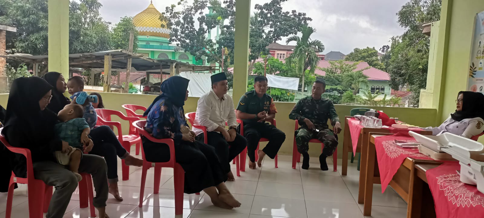 PEKANBARU (Saturealita.com)-Bersama Lurah Edwar Brata Putra Babinsa Sekip Koramil 04 Limapuluh Kodim 0301 Pekanbaru, Serda Satia Eka Putra kunjungi Posyandu.