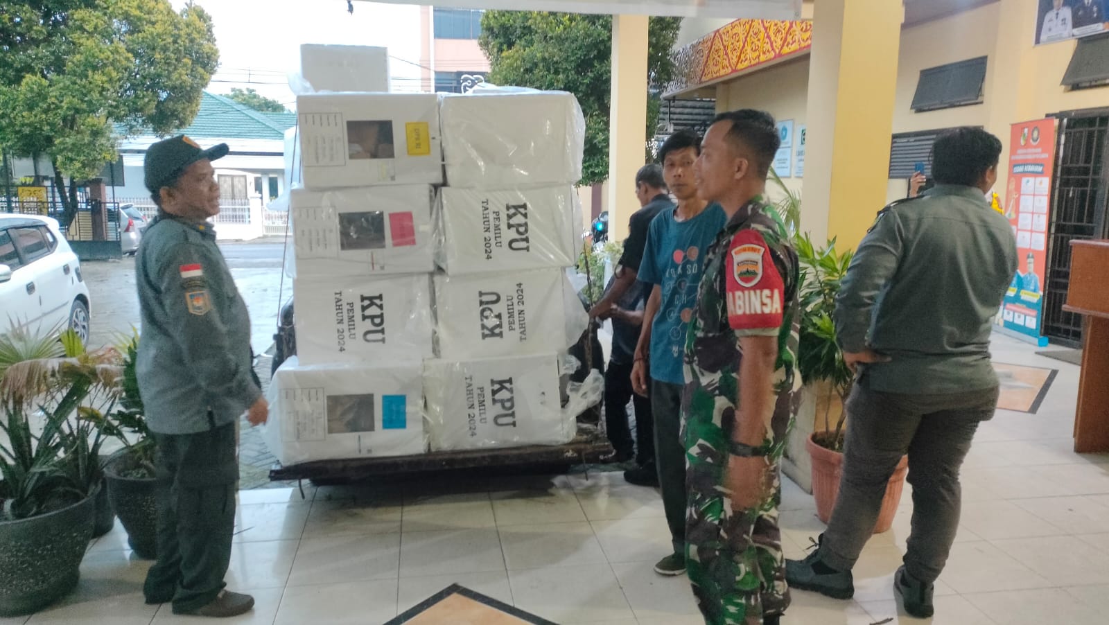 Pengembalian logistik pemilu 2024 kelurahan Tanjung Rhu berlangsung, Jumat (16/2/2024) dan dikawal dan dimonitoring dengan ketat, Babinsa Tanung Rhu, Koramil 04/Limapuluh, Kodim 0301/Pekanbaru, Sertu M. Isak.