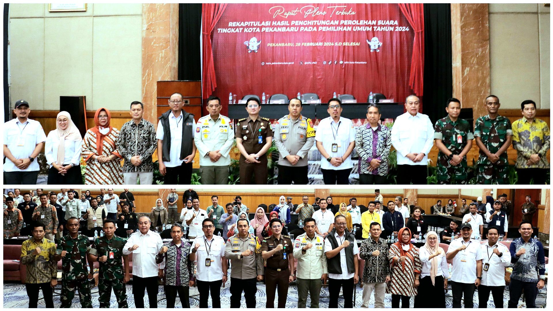 Rapat tersebut dihadiri oleh sejumlah tokoh, termasuk Pj. Walikota Pekanbaru yang diwakili oleh Kaban Kesbangpol Syoffaizal, Ketua KPU Provinsi Riau Rusidi Rusdan, Kapolresta Pekanbaru Kombes Pol Jeki Rahmat Mustika, serta beberapa pejabat dan saksi peserta Pemilu.