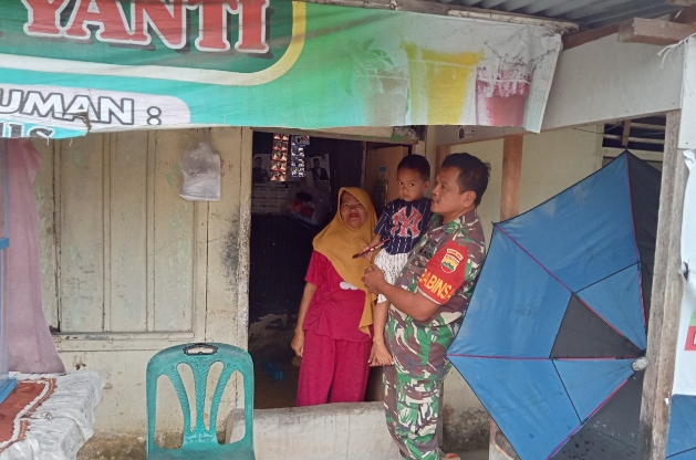 Babinsa Sialang Sakti Giat Memonitor Perkembangan dan Pendataan Anak Stunting Wilayah Binaannya