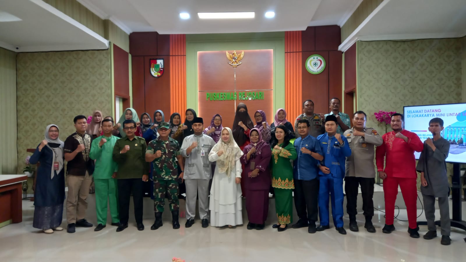 Kegiatan Lintas Sektoral TW l Tahun 2024 Puskesmas Rejosari Wilayah Pelayanan Kecamatan Tenayan Raya bertempat aula lantai dua Puskesmas Rejosari Jalan utama Kelurahan Rejosari Kecamatan Tenayan Raya Kota Pekanbaru, Sabtu, (9/3/2024).