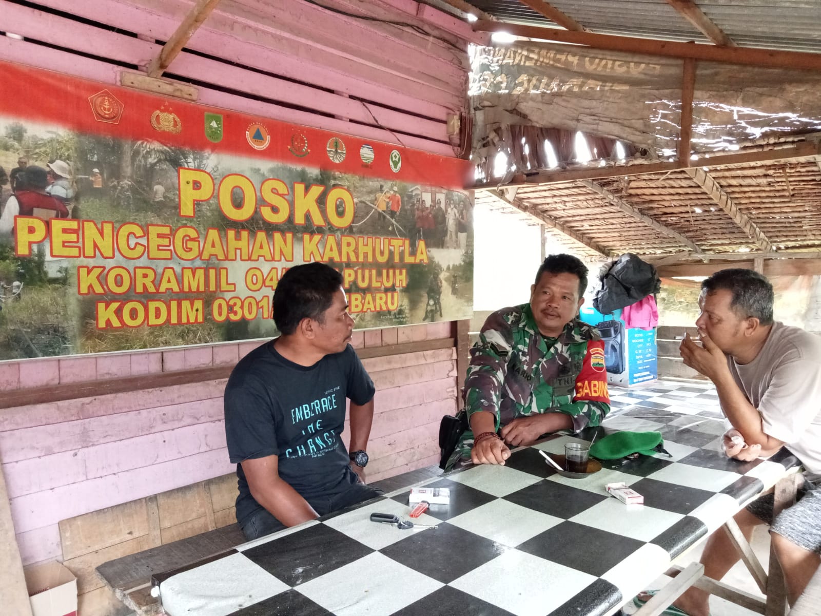 PEKANBARU (Saturealita.com)-Sekitar pukul 11.30 Wib, Babinsa Koramil 07/Tenayan Raya Kodim 0301/Pekanbaru Sertu Karjo melaksanakan kegiatan Patroli dan Sosialisasi Cegah Karhutla diwilayah binaanya.