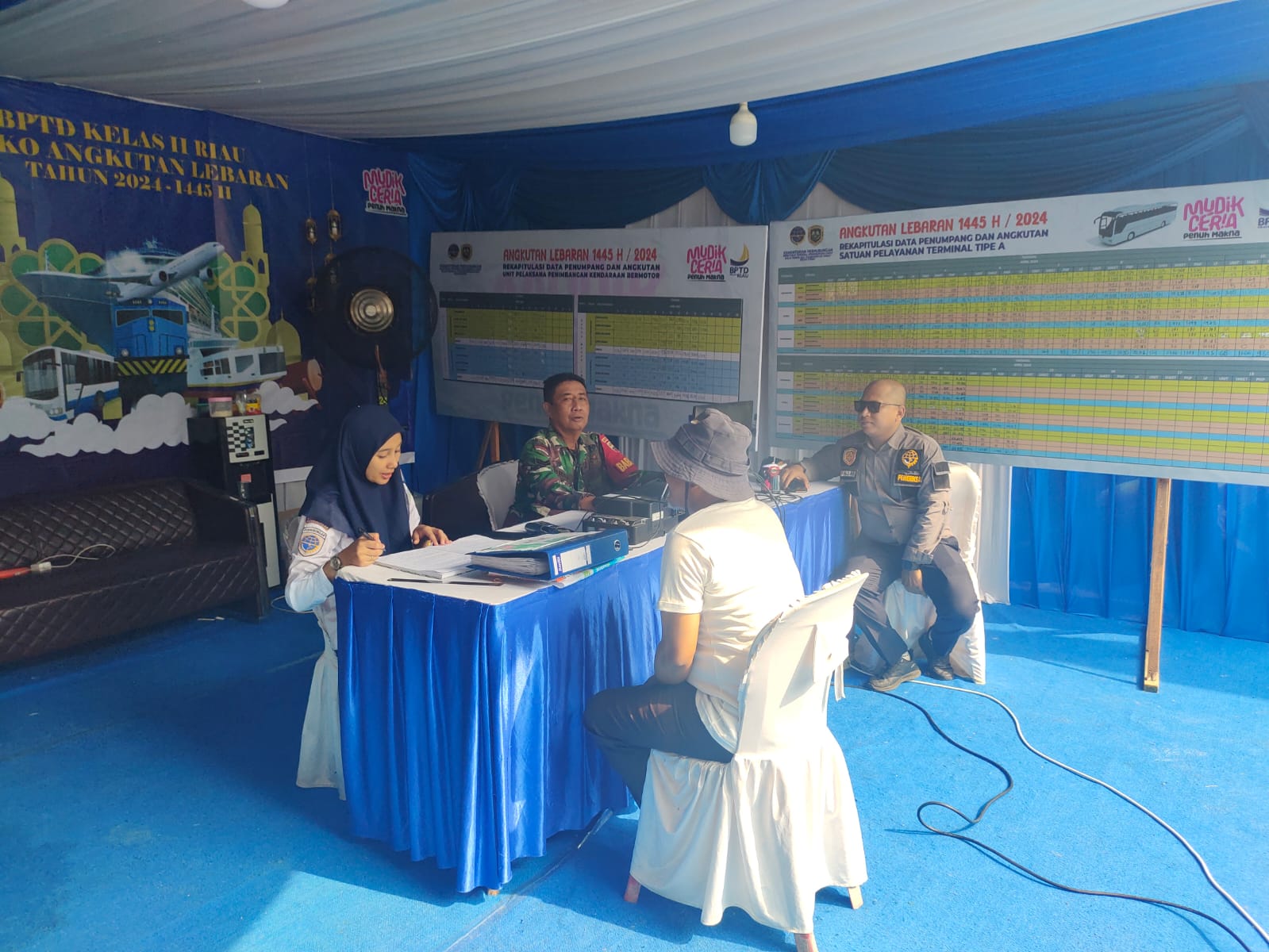 Komsos terkait dengan memonir Pos Pam anggutan lebaran dalam rangka Lebaran Tahun 2024 -1445 H yang bertempat Kantor BPTD Kelas II Riau Posko Angkutan Lebaran Jalan Sutomo Kelutahan Rintis Kecamatan Limapuluh Pekanbaru.