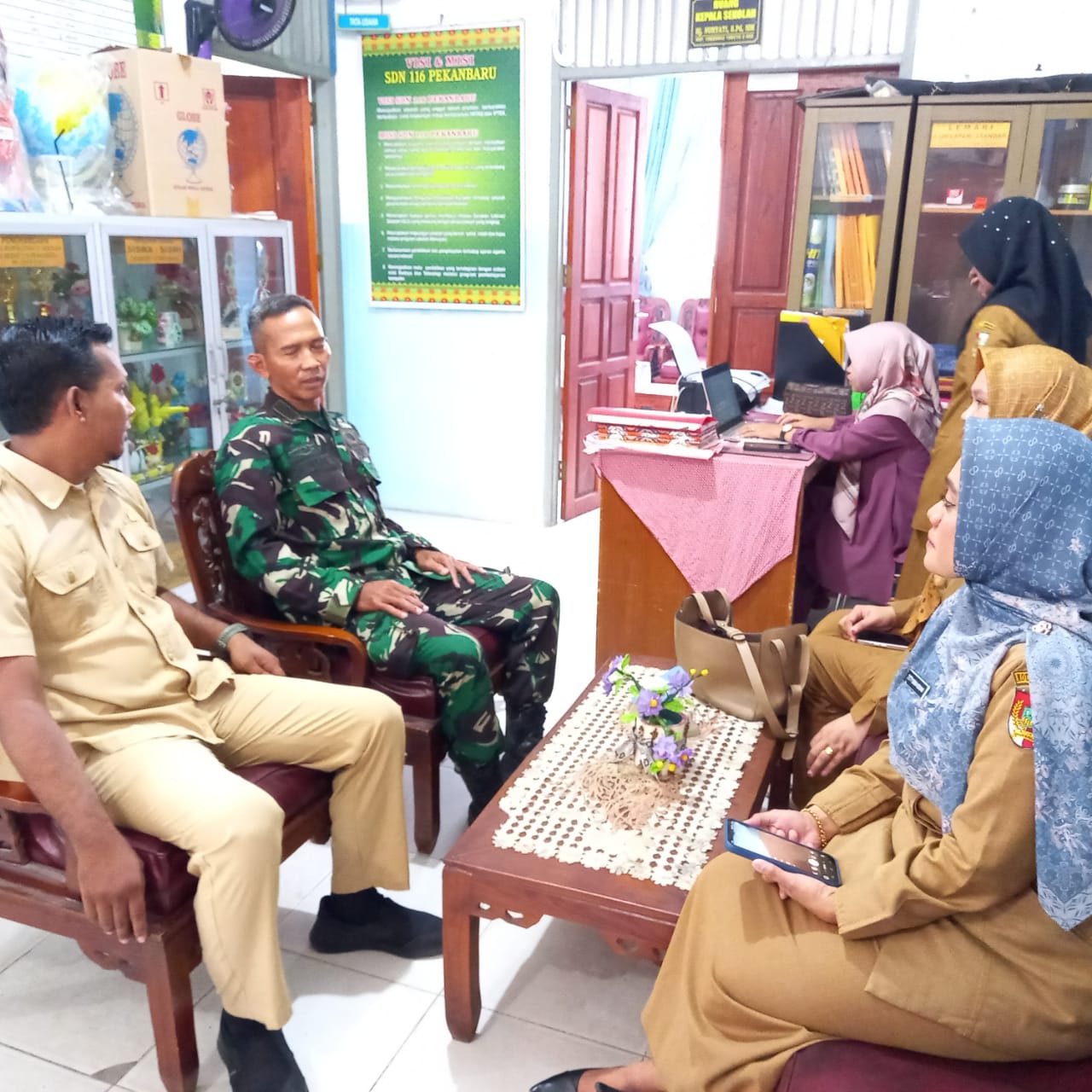 Adapun yang hadir dalam kegiatan tersebut, Babinsa Kelurahan Tangkerang Timur, Pelda Sunari, Kepala Sekolah Tety siska S.Pd, Tata Usaha SD N 116 Eko dan majelis guru.