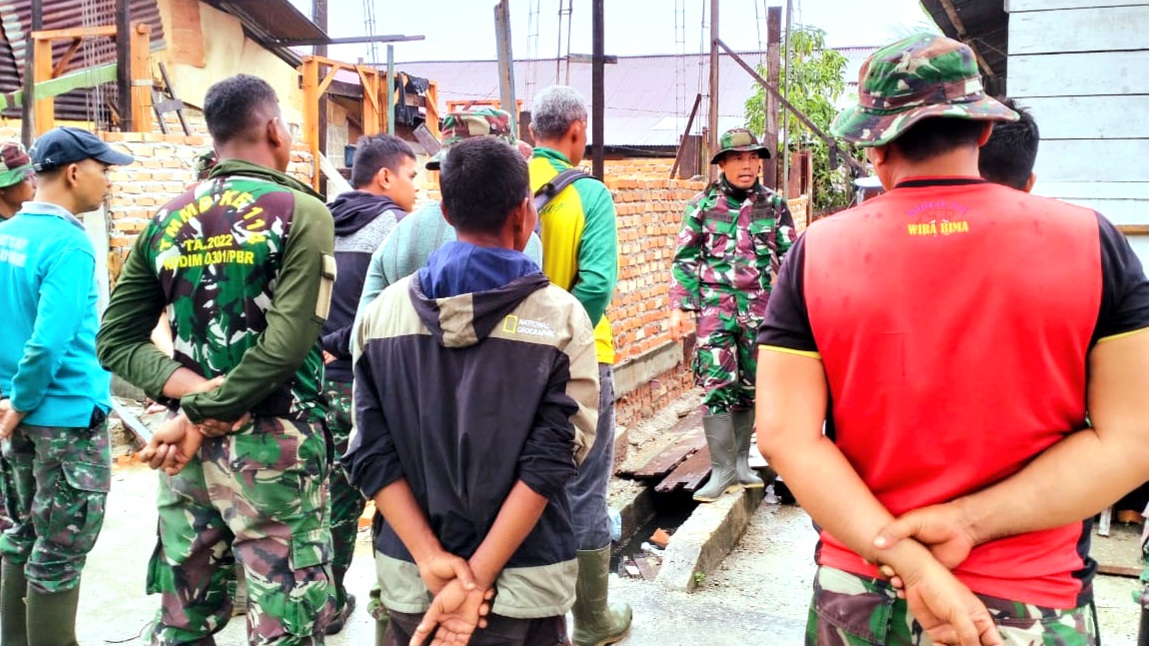 Satgas Pra TMMD yang terlibat dalam sasaran fisik selalu siap menghadapi segala rintangan bersama warga. Walaupun cuaca yang sangat tidak menentu bukan alasan bagi personil satgas Pra TMMD untuk bekerja rehab RTLH milik warga.