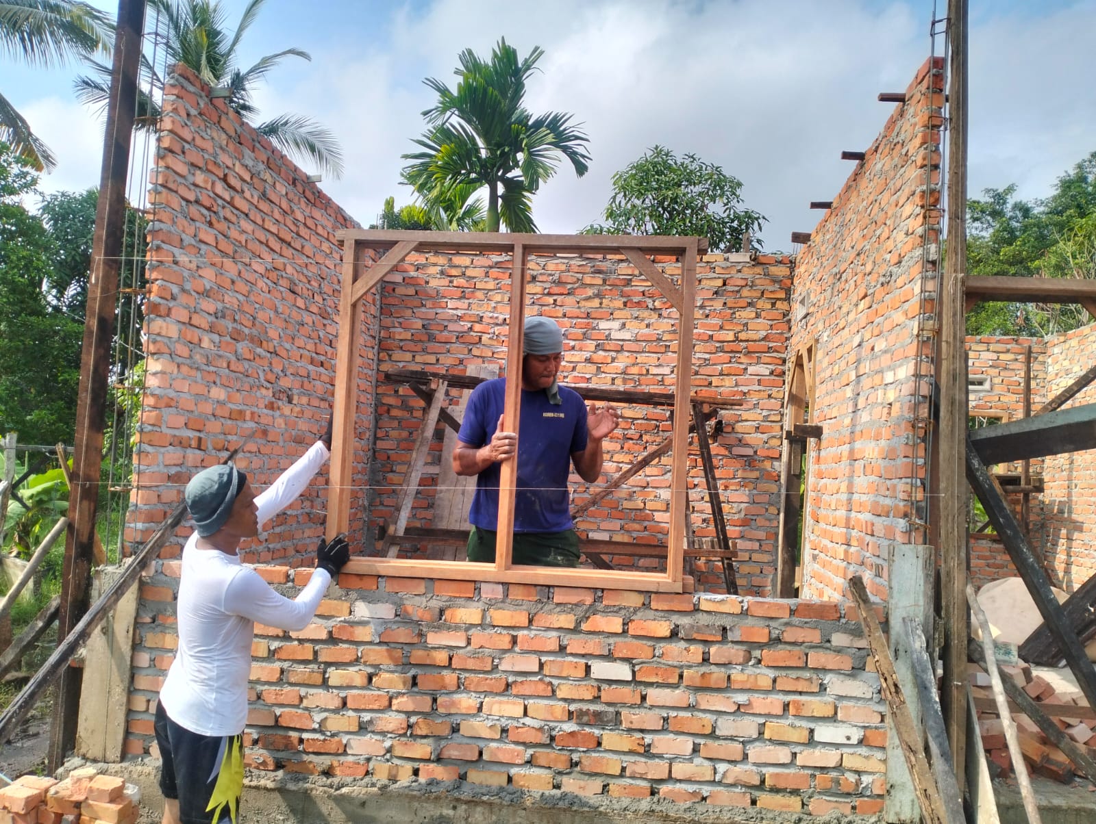 “Alhamdulillah saat ini, kami bersama-sama memasang batu bata pengikat konsen cendela salah satu bangunan Progam TMMD ke-120 yang sedang berlangsung selam satu bulan penuh”, ujarnya.
