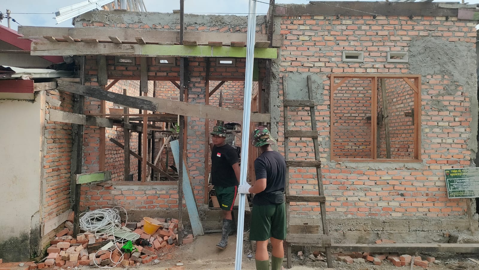 PEKANBARU (saturealita.com)-Kegitan pelaksanaan TNI Manunggal Membangun Desa (TMMD) regular ke 120 Kodim 0301/Pekanbaru memasuki tahap pengerjaan pemasangan kuda-kuda rumah tidak layak huni milik Ibu Desmi Yantri, warga RT 06 RW 03 Jalan Yos Sudarso gang Saiyo Kelurahan Meranti Pandak Kecamatan Rumbai.