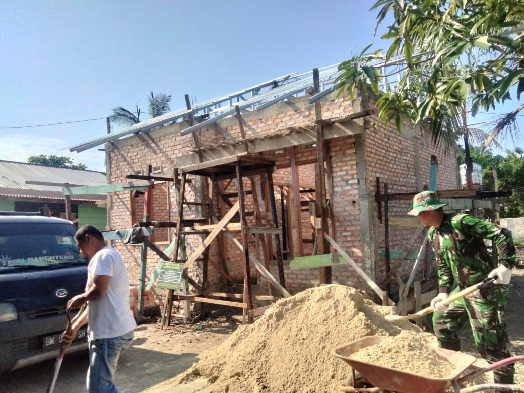 Kelanjutan percepatan pembangunan Rumah Tidak Layak Huni (RTLH), tanpak tim Satuan tugas (Satgas) TMMD reguker ke-120 Kodim 0301 Pekanbaru, Kopka Yusuf Gunawan sedang dan masih melakukan pekerjaan yang belum tuntas sebagaimana mestinya.