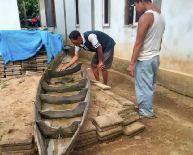 Sampan yang digunakan korban terlihat rusak bagian belakang