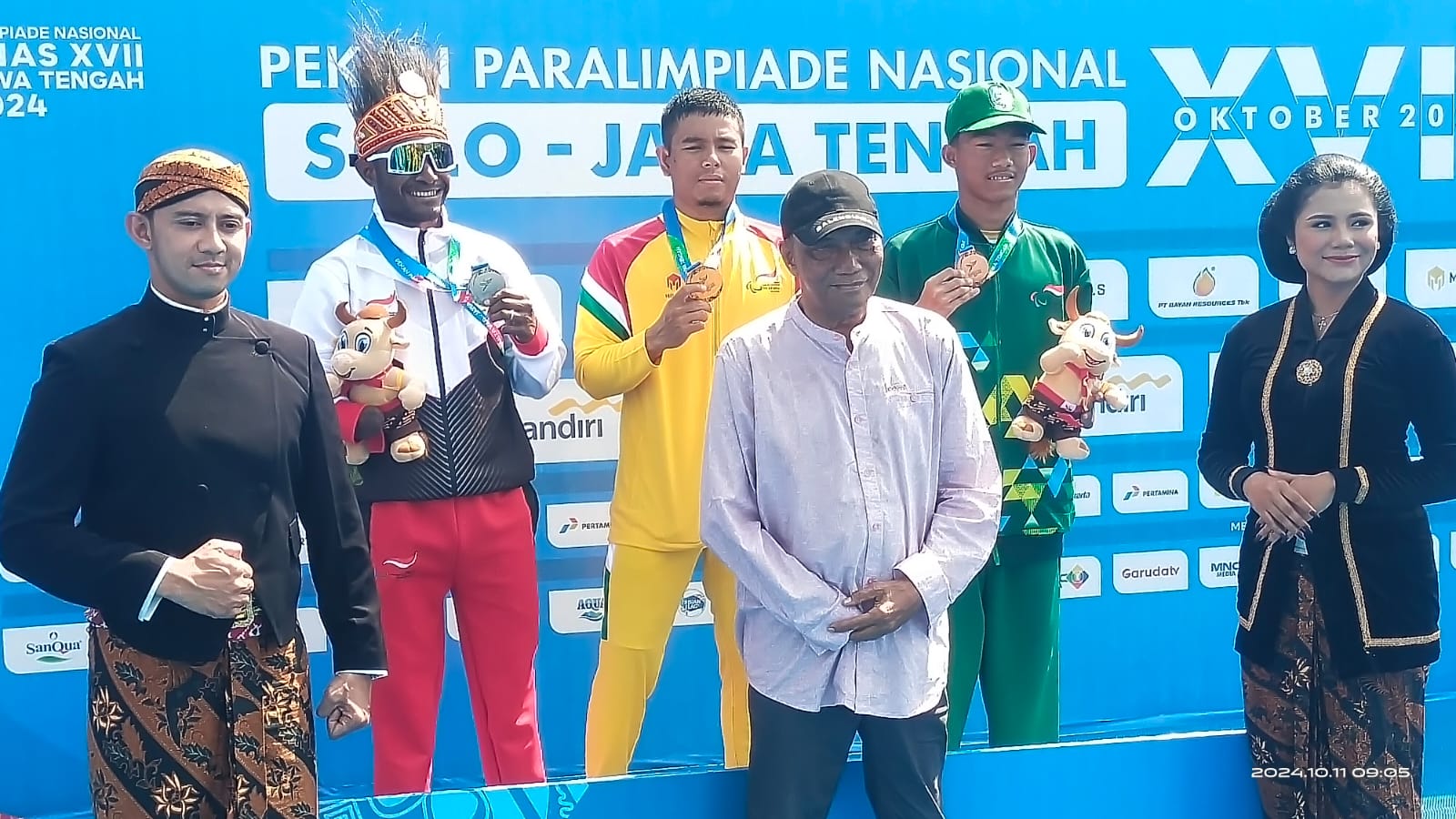 KARANGANYER,saturealita.com-Saat Tangisan haru Ketua National Paralympic Committee Indonesia (NPCI) Riau Jaya Kusuma pecah saat mengalungi medali emas.