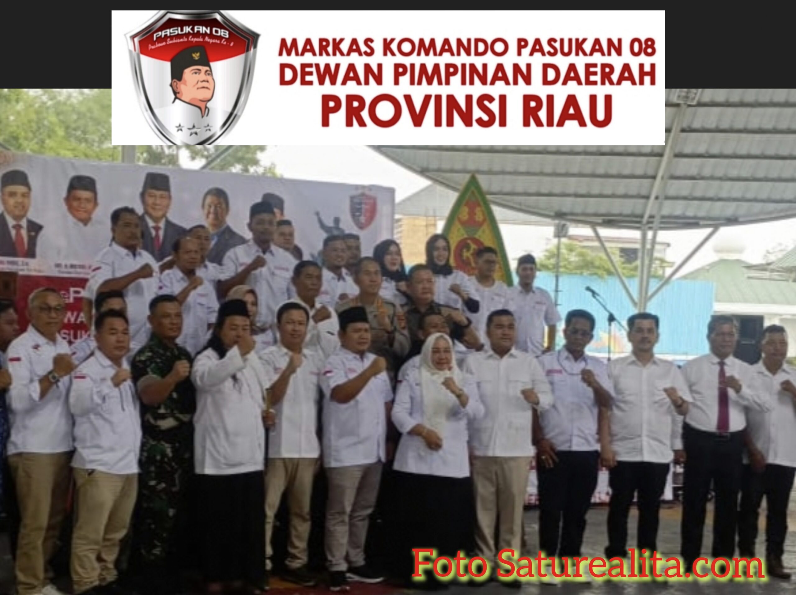 Selain pelantikan Pasukan 08 juga dibarengi dengan pelantikan Badan Hukum (Bahu) Prabowo Provinsi Riau.
