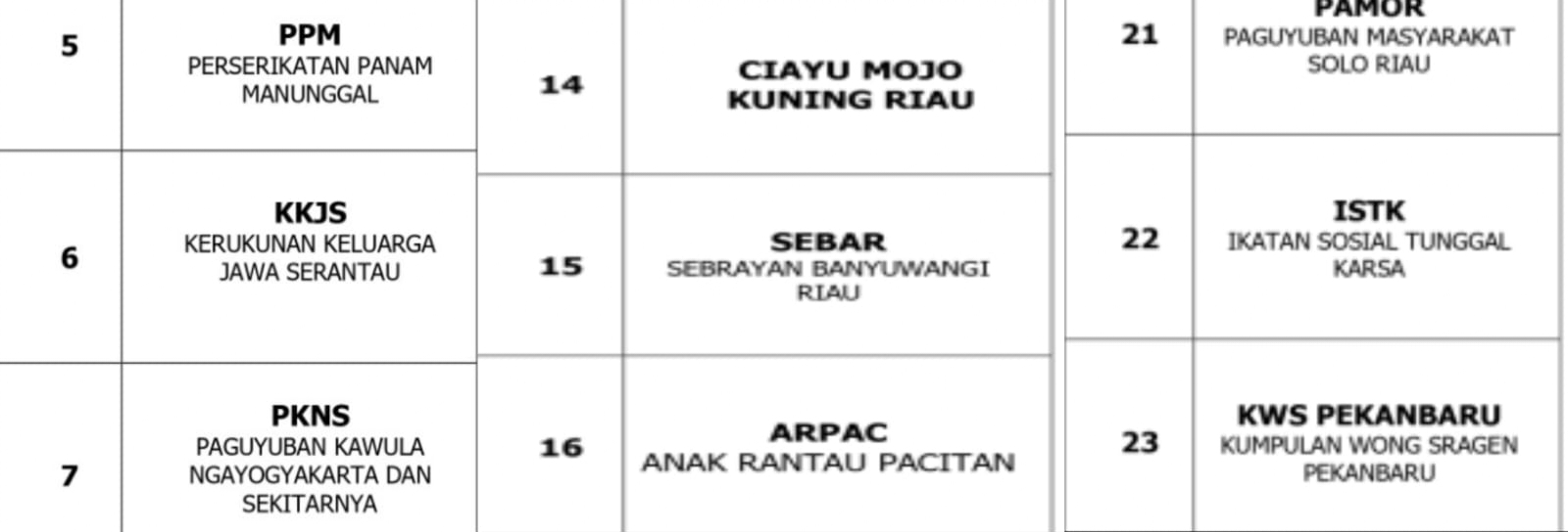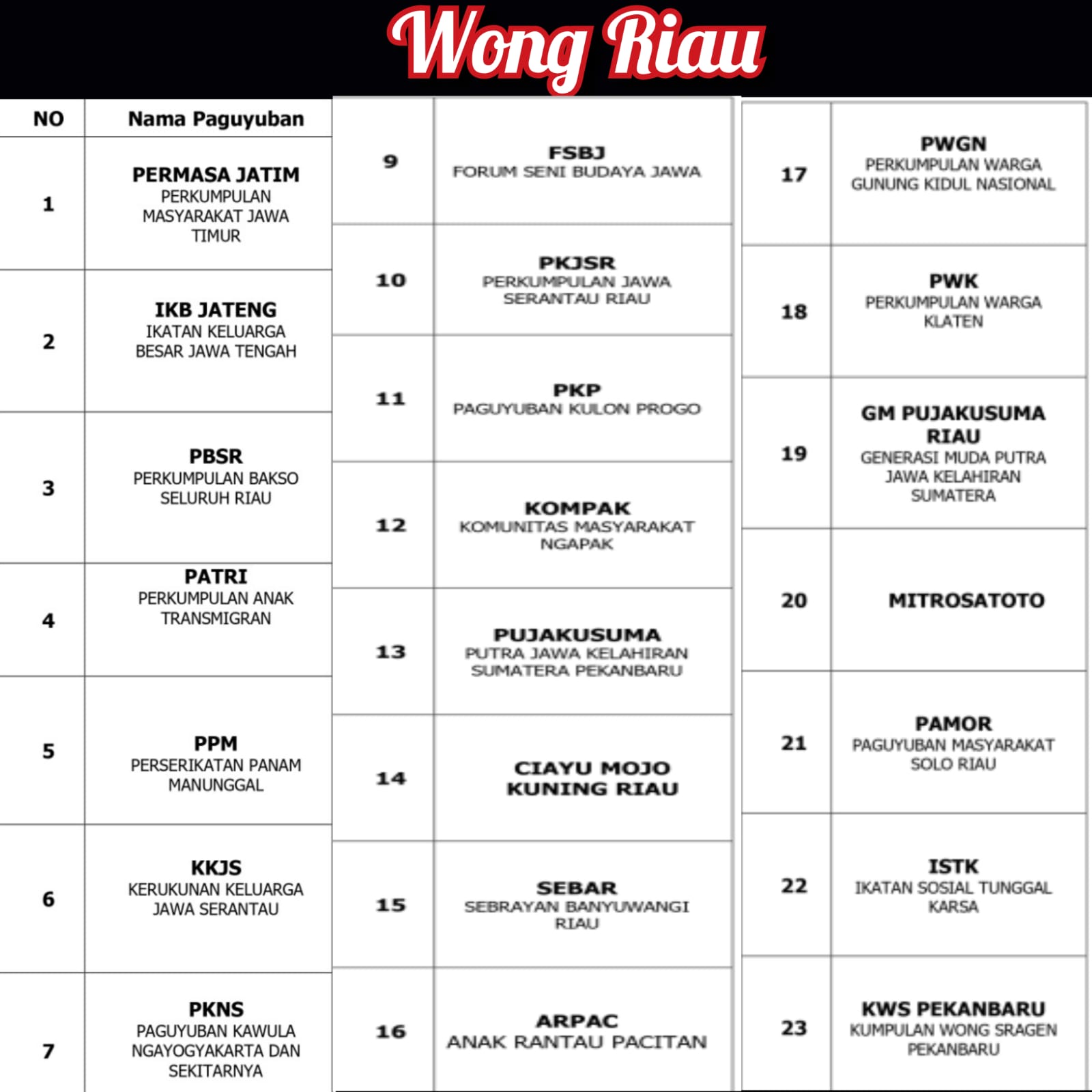 “Ini baru 39 Wong Riau yang tergabung dalam Paguyuban dan organisasi Jawa di Riau, Insyaallah, seiring waktu berjalan, akan bertambah lebih banyak lagi”, jelasnya kepada media online ini.